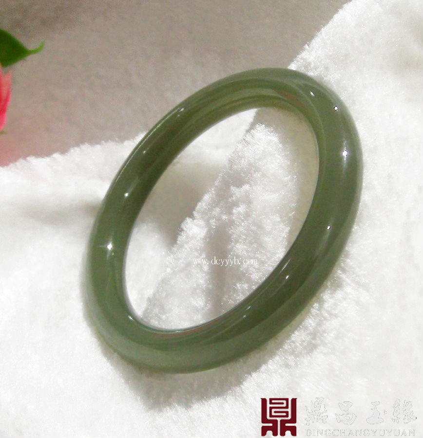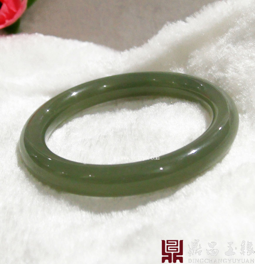 新疆和田玉碧玉手镯,色泽淡雅,油润光滑,萦绕于腕。整器抛光精美,光泽夺人眼球,玉料圆润厚实。造型为平安镯样式,平安镯内面平缓,更符合手腕的构造,简约典雅。