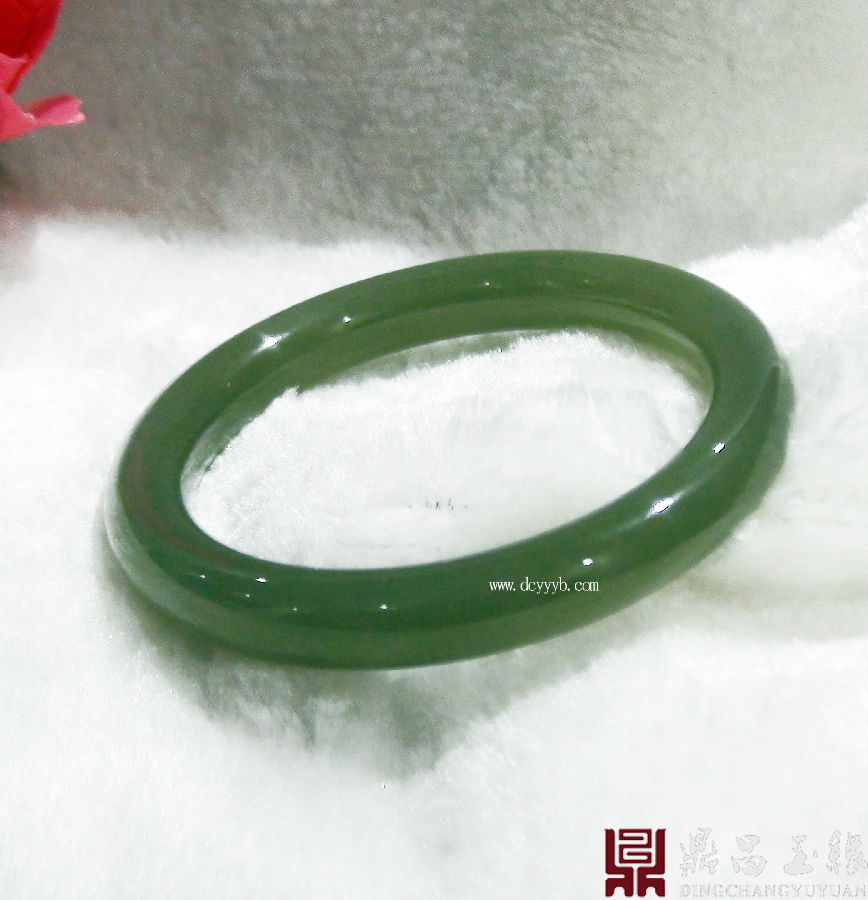 新疆和田玉碧玉手镯,色泽淡雅,油润光滑,萦绕于腕。整器抛光精美,光泽夺人眼球,玉料圆润厚实。造型为平安镯样式,平安镯内面平缓,更符合手腕的构造,简约典雅。