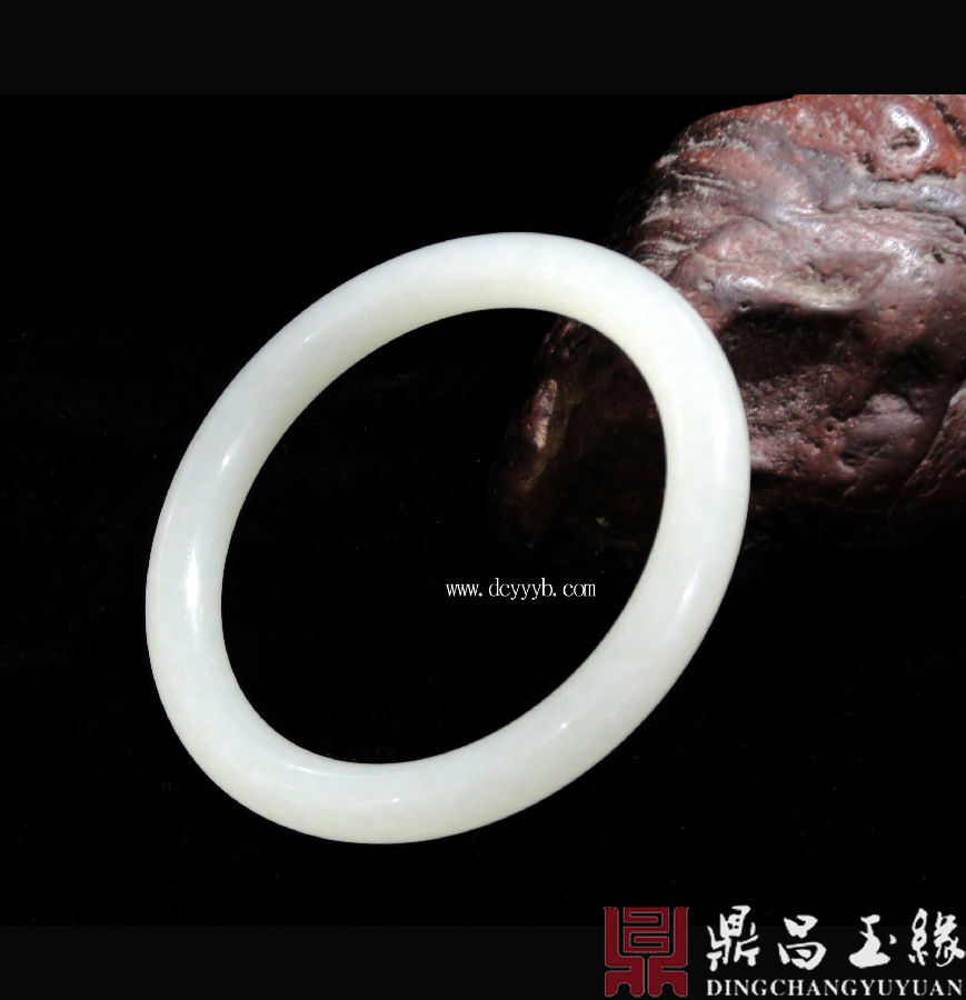 新疆和田玉白玉手镯,光泽莹润,玉质细腻,油润顺滑,温婉柔和,。外环略呈弧形,内环平滑,光洁简素,大方美观,适合佩戴。
