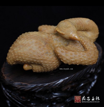 此件为福建寿山石摆件作品。雕琢精益求精,线条婉转洒脱,栩栩如生。自古自今,人们喜欢自己的生活吉祥如意,并将这种情感寄希望与一些动物身上。此件寓意为时机成熟。