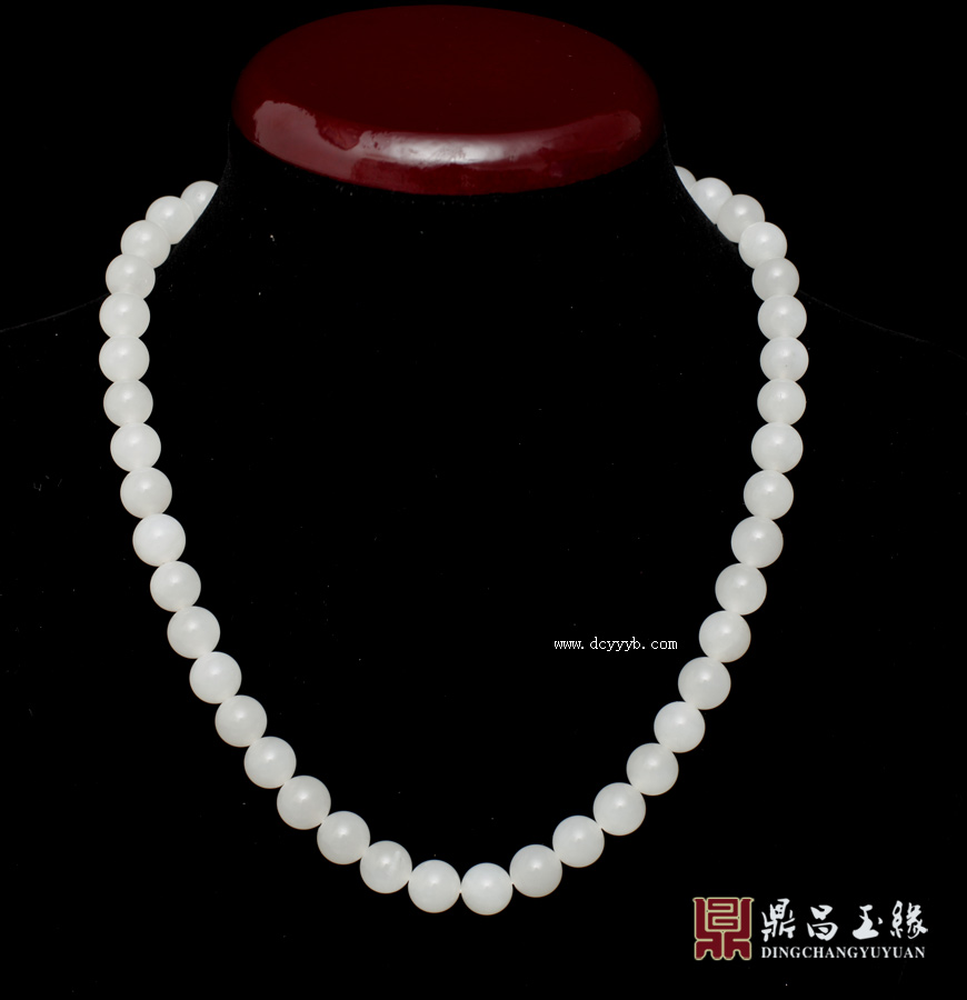 新疆和田玉羊脂白玉项链作品,质地莹润,油亮色泽,成色均匀,温婉柔和,娇俏可人。