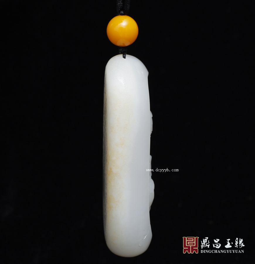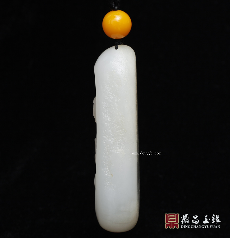 新疆和田玉籽料羊脂白玉把件作品,玉质细腻油润,玉肉缜密,莹亮光泽,背部皮色绚烂美丽。雕观音手执净瓶,坐于莲花宝座之上,身姿丰腴,安详温婉。整体结构和谐,比例精准,衣纹处理精细,流畅圆融的线条传神地展现了人物神韵,也利于把玩鉴赏。此件寓意吉祥,观音庇佑祛邪避灾,万事大吉。
