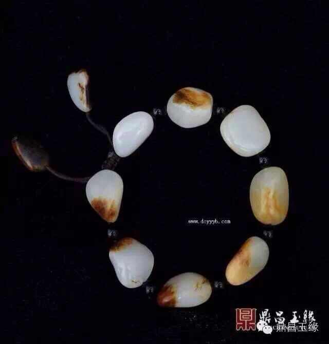 真仔料在河水中经千万年冲刷磨砺,自然受沁,它会在质地软松的地方沁入颜色,在有裂的地方深入肌理。这种皮色是很自然的,叫做活皮。它的颜色浸入玉内有层次感,过渡自然,皮和肉的光泽质地感觉是一致的。皮上的颜色应是由深入浅,裂隙上的颜色应是由浅到深。其实好玉是不长皮的,即便有,也是星星点点,或在细小的裂缝里。