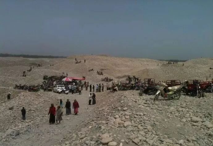 在和田附近的河道,经常有维族的朋友在河道两旁采玉。其中不乏有许多骗人的套路,没生人来就坐在石头堆上聊天休息,一见面生的人经过,就会开始他们的演戏。许多慕名去和田收料的玉友都这样被宰!