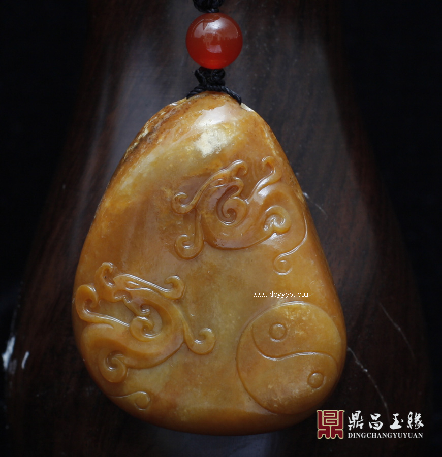 新疆和田玉籽料黄玉作品,玉石轮廓圆润,玉质细腻,油润丰盈,成色均匀,精光内蕴,手感舒适。正面面上方浮雕仿古龙凤,龙呼风唤雨,凤翔鸣九天,古朴华美,大气磅礴。龙凤是大家喜闻乐见的吉祥之物,从古代到现在流传它们的出现就能带来祥瑞。此件寓意龙凤呈祥,万事如意。