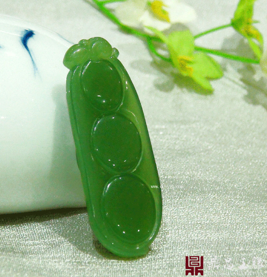 新疆和田玉碧玉挂件,此件雕刻四季豆,四季豆圆弧面造型,颗粒饱满,四季豆又被称为“佛豆”与“平安豆”。寓意四季平安、多子多福、事业有成、幸福美满,适合各个年龄段的人群佩戴。