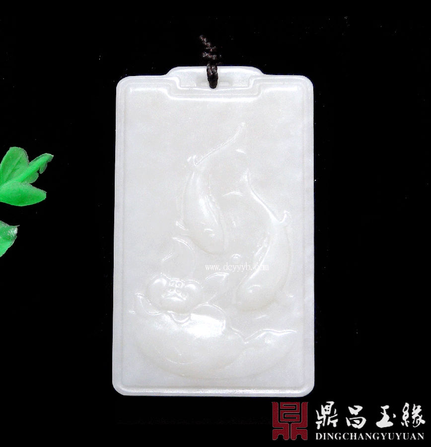新疆和田玉白玉挂件,质地莹润,油亮色泽,成色均匀。此件玉雕金鱼莲花,莲是连的谐音,年是鲶的谐音,鱼是余的谐音,所称连年有余,也称年年有余。代表生活富裕,每年都有多余的财富和粮食。