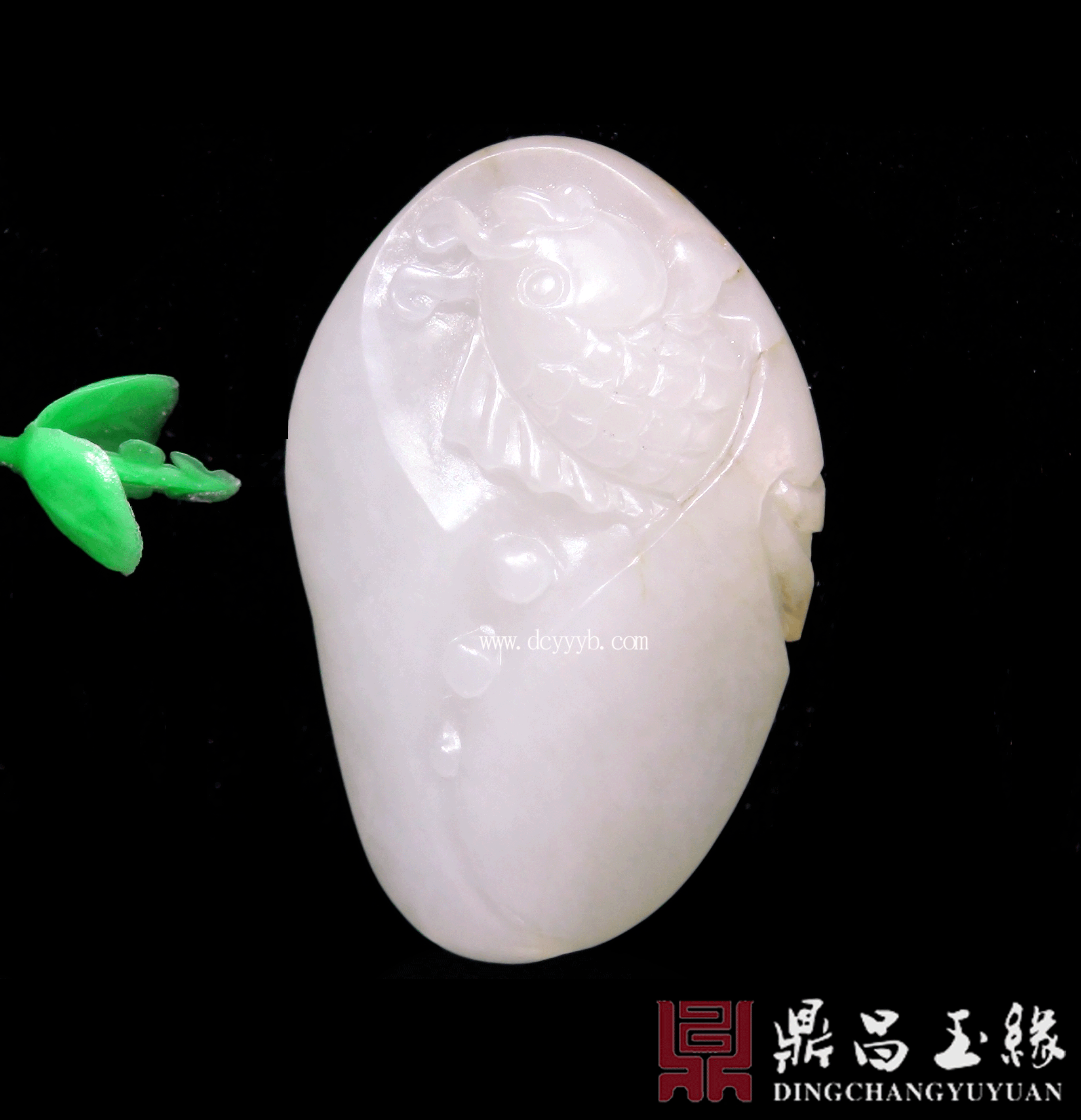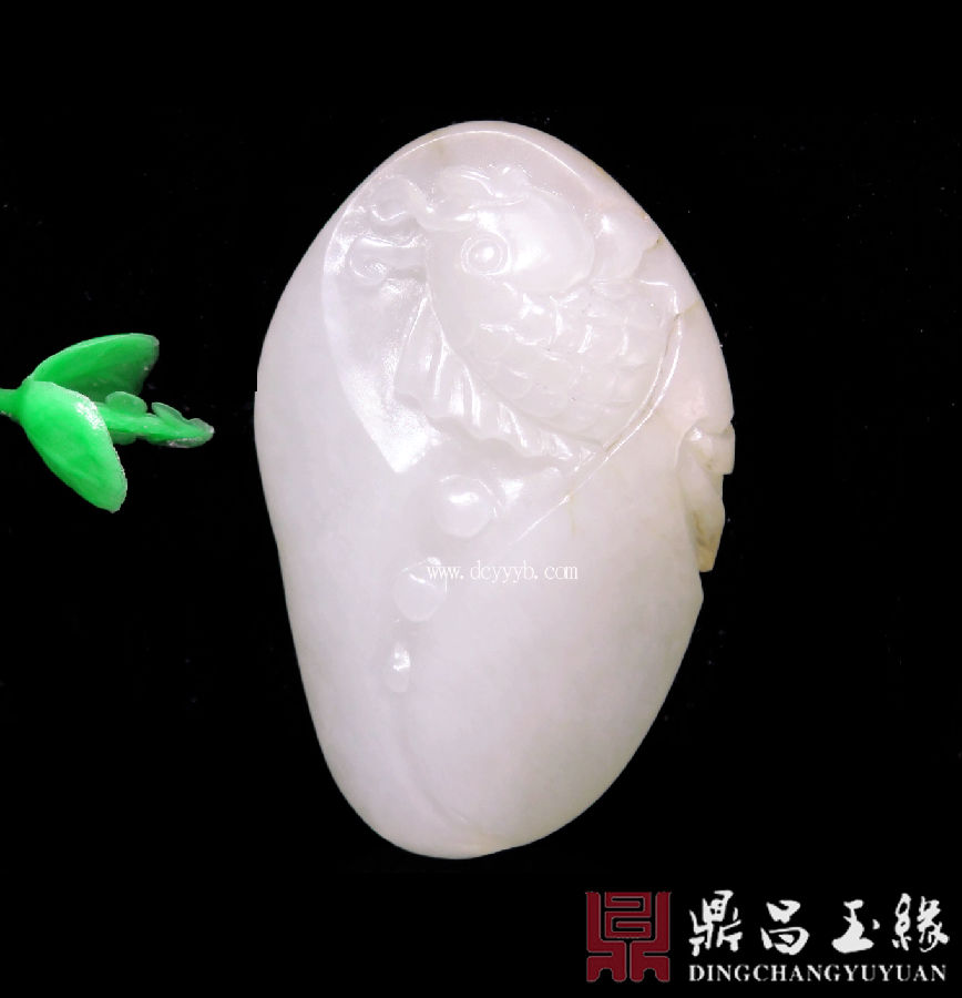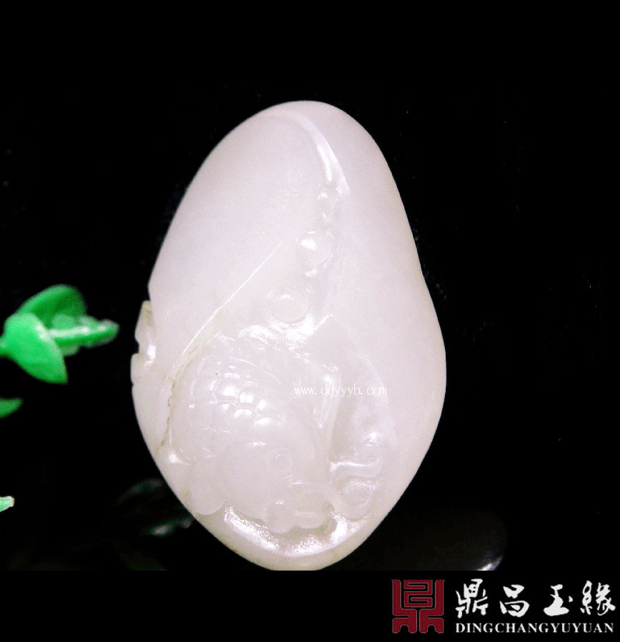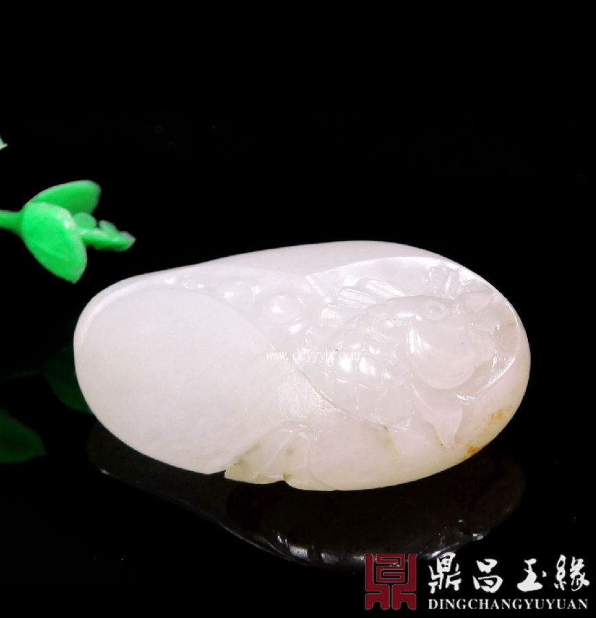 新疆和田玉白玉籽料挂件,质地莹润,油亮色泽,成色均匀,温婉柔和,此件作品玉雕金鱼,“金鱼”与“金玉”谐音,寓意金玉满堂,年年有余,鱼跃龙门。