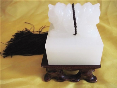 我喜欢玉器,也喜欢收藏玉器,今年年前北京一家卖玉器的公司向我推荐了这件名为“国宝生肖龙玉玺”的玉器,他们介绍说是和田玉。因为这件玉器造型精美,所以我就以13000元的价格买了下来。希望专家可以帮我鉴定一下这件玉器的材质是不是和田玉。