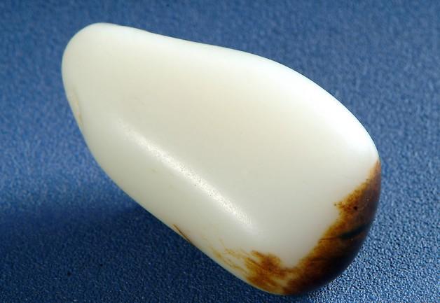 籽料原石表面都有汗毛孔,无论其质地细腻与否,因此看和田玉原石表面的汗毛孔是用来鉴定它是不是籽料的一个重要方法。当然有些汗毛孔肉眼难见,需要借助了放大镜才能观测得到。汗毛孔不像籽料其它特征,绺裂可以做出来,皮色也可通过染色而成,但是汗毛孔不同,并不容易做出来。假和田玉与真的再相似,其表面也是没有“毛孔”的。