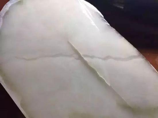 顾名思义,水线指和田玉料中含有的不规则条形透明线。直观的说,水线就是玉石里面一条半透明的,像筋一样的东西。