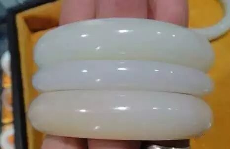 这一张网络上95于田料跟青白玉籽料和糖玉的对比图(中间为95于田手镯),众所周知,青白玉(发青)和糖玉(发黄)虽然在白度上要差一点,但是脂份通常是要比白玉还好的,通过对比看出,95于田料的油润居然不输于青白玉籽料和糖玉。
