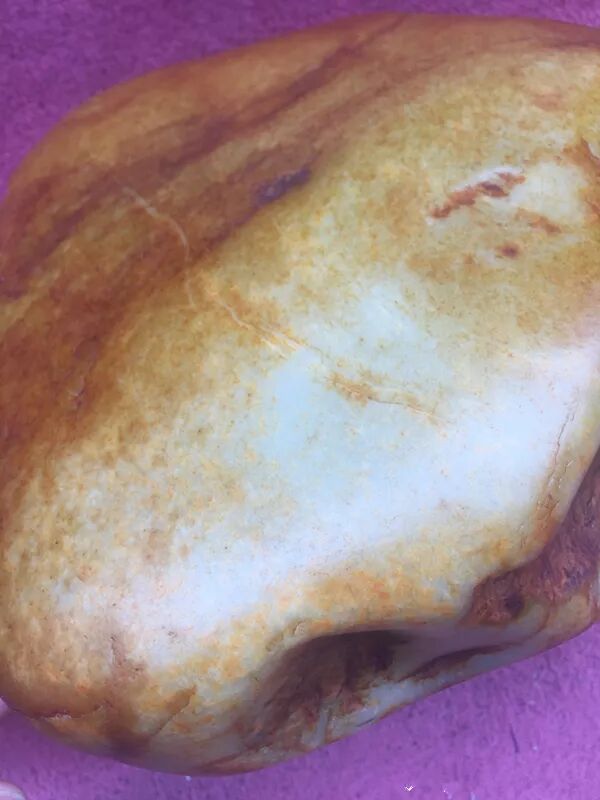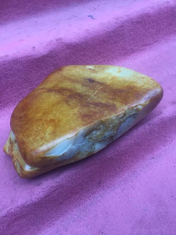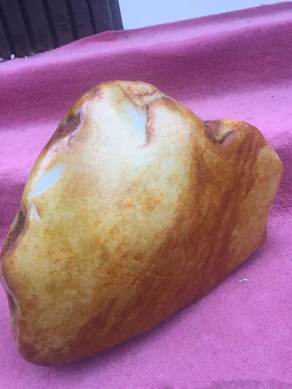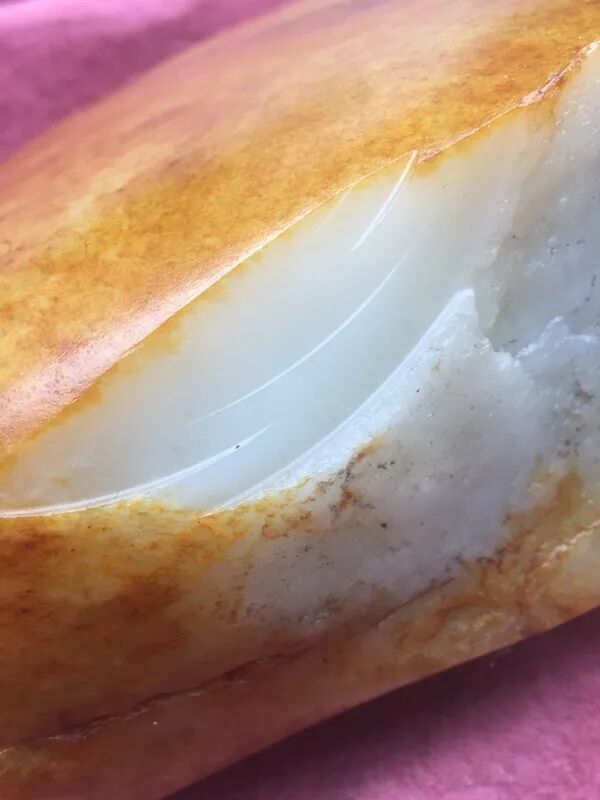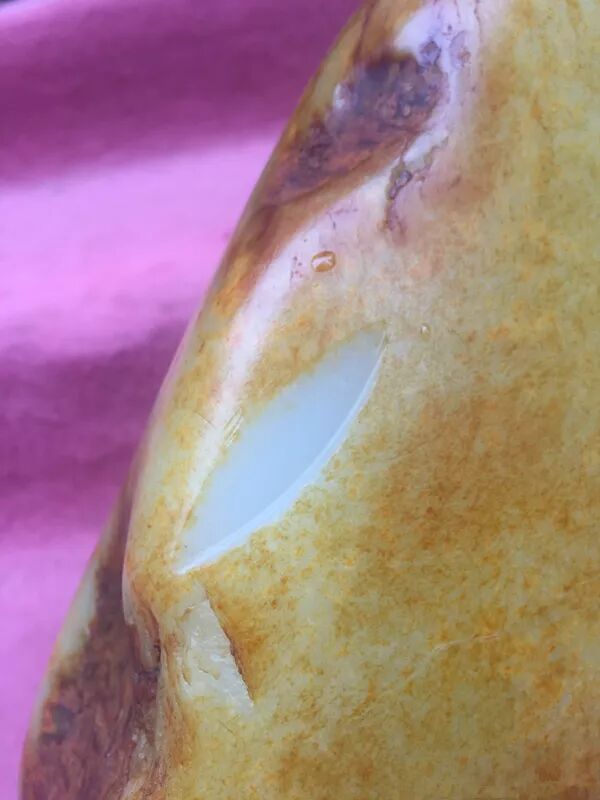 在和田玉籽料赌石中,有的要开窗,就是在原石表面切掉一块,把里面的肉露出来,商家往往能凭借丰富的经验,找到肉最好的那一块区域,切掉皮,露出极好的肉,提升卖相,从而吸引客户来赌石。