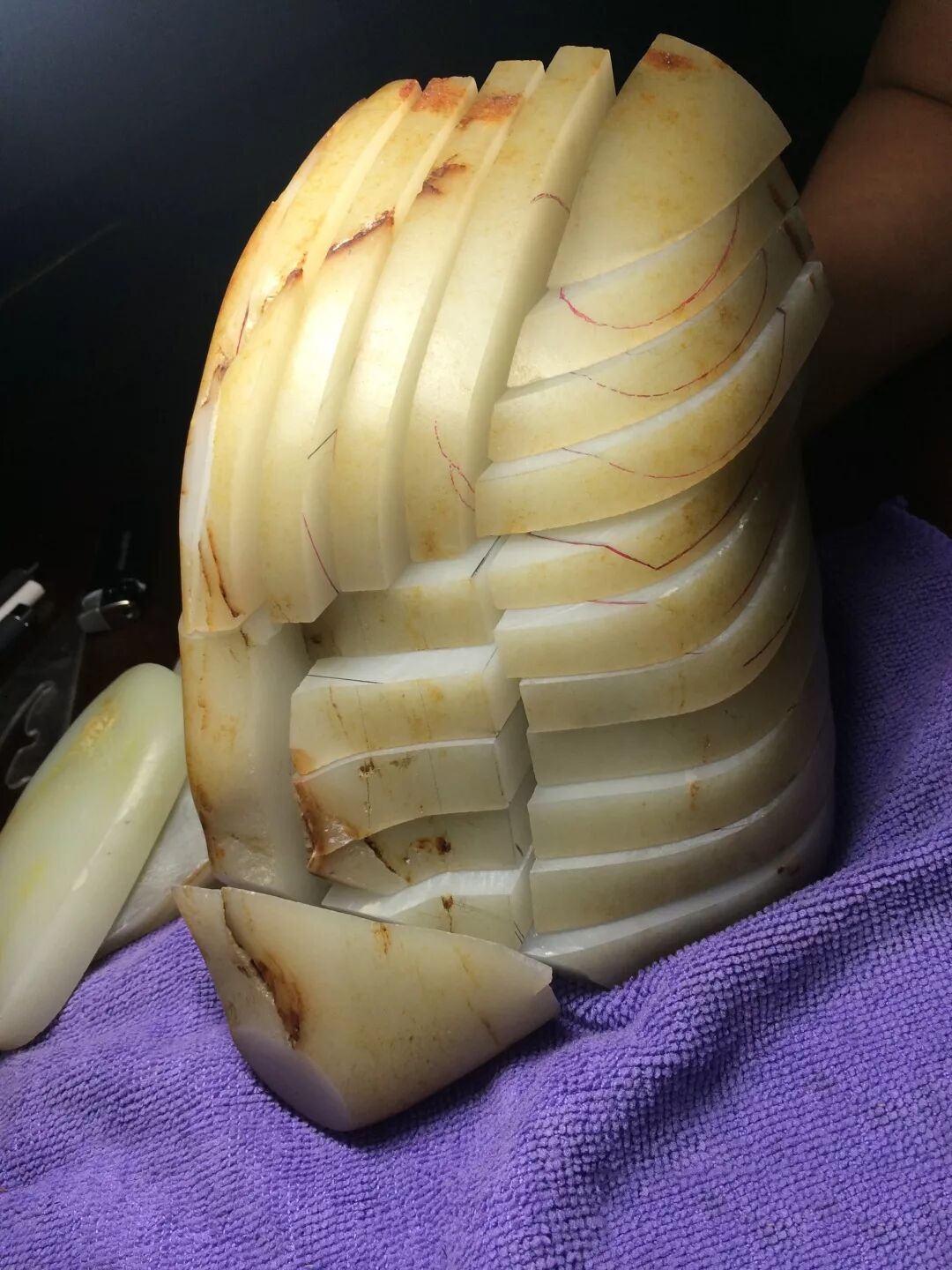 什么是和田玉的油性? 简单来说,我们平常所说的油性其实包含两个概念,即玉石的视觉油润和触觉油润。视觉上的油性其实很好理解,就是和田玉看上去有一种油脂般的光泽,光泽柔和,似是一层淡淡的油光。 触觉上的油润就是把籽料的触摸感,是一种略有阻力感的油滑的感觉,滑而不腻,似油非油。就是这样的手感,让玩家们把玩和田玉有种停不下来的感觉。这两点相信玩家们都有所体会。 人们对籽料油性的理解,主要有两种观点: 1、视觉上的观感 即和田玉的表面由于玉石分子特殊的结构,形成特别的对光的漫反射效应,呈油脂般的光泽。 2、触觉上的感觉 盘玩过程中手指的触摸感,滑而不腻,似油非油。 快速判断玉料的油性。取干净的白布,包起料子来,快速摩擦一分钟,看看它的变化。油性好的料子,会有一种油脂感和光泽度散发出来。大家看多了,自然就能理解了。 和田玉油性从何而来? 和田玉本身是不出油的,它仅仅是一块玉石,为什么会有这种油性的感觉?是什么原因造成和田玉这种独特的油性?如果从科学专业的角度来解释的话,可能会比较难理解:固体材料的"油性",是其晶体结构特征,晶粒尺寸,致密度,反射率,透射率,折射率和表面光洁度所共同确定的反射效果的视觉反应。 以上这些特征共同形成了和田玉的特有属性:油性。晶体结构,简单通俗的来说“油性”跟组成籽料晶体的大小,排列紧密,以及这种晶体的反射光等很多方面有关。 决定籽料油性的因素 1、糯性 籽料的油性与糯性是分不开的,糯性打个比方,如同煮熟大米的感觉,很厚油亮的感觉,也可以说跟水洗过的肥皂相似。 籽料的油性与玉质内部结构相关,具体来说,是与其结构的细度和致密度有关的。 2、细度 细度就是玉质里面晶体颗粒的大小,籽料的晶体颗粒直径和分布一般都较其它和田玉小得多,也密实得多。用羊脂来描述顶级的白玉籽料,就是因羊脂极细腻,摸上去有一种能把它融化的感觉。 3、致密度 致密度是描述玉料晶体间隙的大小,致密度不等同于密度,虽然跟密度有很大关系;同时致密度也不是玉的结构。 开料的致密度,观察锯片拉出的痕迹是不是油亮的;而成品的致密度,则看光泽,光泽强烈一般致密度较高。 单纯分析玉质的净度、密度、细度、润度、油性,其实都是片面的,需要综合来看。只要上述材料特征中的某一个指标改变,油性就消失了。 如果晶粒尺寸变大,玉质的细腻感就没了,油性也没了,如大理石。透明度过低,也失去通透感和层次感,整体呈现"死白"感觉,油性也没了。 俄料和韩料的致密度和散射率稍差,导致细腻感觉和层次感(表层通透感)不足;而青海料的致密度不够高并且透明度过高,也导致细腻感和层次感不足,外加色泽泛青,综合效果是缺少油性。 可见,籽料指标的些许改变,都会影响玉石的观感,十分微妙。还可以说和田玉的油性跟它的玉质结构是息息相关的,包括细度、糯性、致密度等等方面,有一个条件达不到就很难有油性的效果出现。而籽料的那种恰到好处,就构成了它独有的那种油润感。如果玩家们还是难以理解的话,其实也没关系,玩玉会看油性就可以了,并没有特别有必要知道这种油性是如何而来的,所有的籽料都有它的独特性。 油性差的就是假籽吗? 不是所有的籽料油性都好,也不是油性好的都是籽料。 山料就没有油性吗? 并不是,山料油性好的也有很多。油性只是肉质出众的籽料具有的特征而已,不做为判断真假籽的指标! ▲山料 抛光与油性和田玉抛光方式: 第一种:亚光,即只做轻微抛光,光泽发暗,但是油脂感强。 第二种:强抛光(亮光)。可使和田玉看似油光四溢,呈现类似玻璃的光泽。 和田玉有油脂光泽、玻璃光泽及蜡状光泽之分,其中以油脂光泽最佳,可使玉石显得有温润感。其次是玻璃光泽,而蜡状光泽欠佳。抛光跟玉质有很大关系,玉质越细,打磨及盘玩出来的油脂光泽越好;反之玉质粗的,就很难通过抛光或盘玩出现油脂光泽。